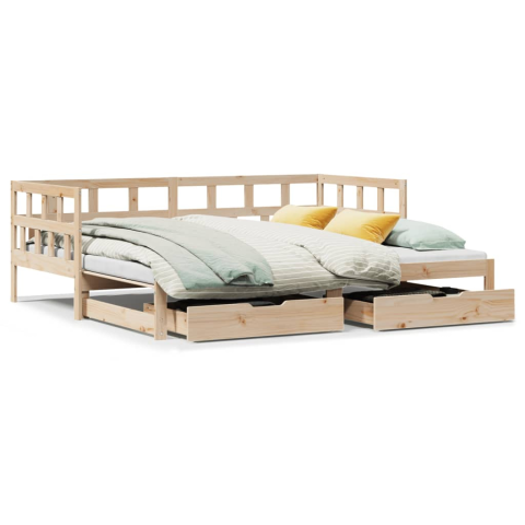 1 kép vidaXL tömör fenyőfa kihúzható kanapéágy fiókkal 90 x 200 cm