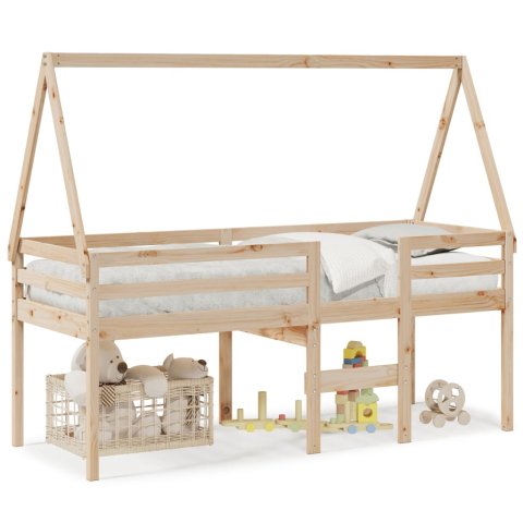 1 kép vidaXL tömör fenyőfa magasított ágy tetővel 80 x 200 cm
