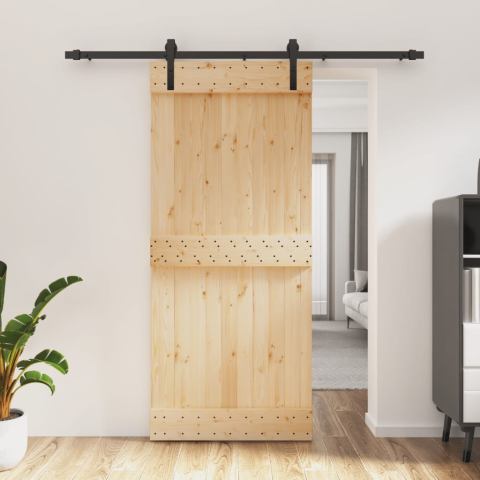 Ezt a tömör fenyőfa tolóajtót úgy tervezték, hogy gazdagítsa háza bejáratát, és nagyobb biztonságot nyújtson otthona számára. Tömör fenyőfa: Ez a beltéri ajtó tömör fenyőfából készült. A tömör fenyőfa egy gyönyörű, természetes anyag. A fenyőfa egyenes erezetű, a csomók pedig jellegzetes, rusztikus megjelenést biztosítanak az anyagnak.Masszív csúszósínek: Az acél kivételesen kemény és erős anyag.Erős szerkezetet és stabilitást biztosít. Az acé