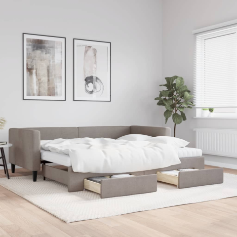 1 kép vidaXL tópszínű kihúzható szövet heverő fiókokkal 90 x 200 cm