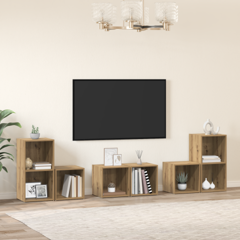 1 kép vidaXL TV Szekrény Szett polcokkal tárolóval 6 pcs Artisan tölgy Faanyag