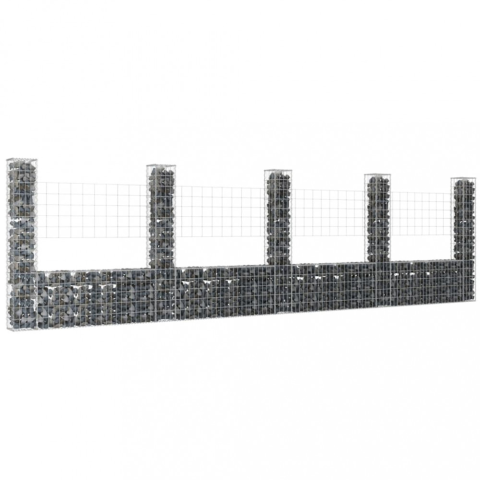 Teljes vidaXL U-alakú vas gabionkosár 5 oszloppal 500 x 20 x 150 cm termékleírás