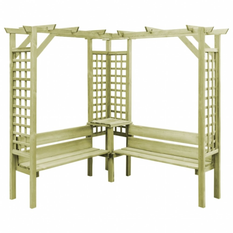 Ezzel a kiváló minőségű pergolával kertjébe vagy udvarába egy kis természetes bájt csempészhet. A kiváló minőségű zöld impregnált fenyőfából készült kerti pergolánk nagyon erős, tartós és időjárásálló. A kerti lugas rózsák és más futónövények számára biztosít támasztékot, ezáltal kertje egyik látványeleme lesz. A hozzátartozó pad ülőhelyet biztosít, hogy gyönyörködhetni lehessen a kertben. Kerti pergolánk könnyen összeszerelhető. Kérjü