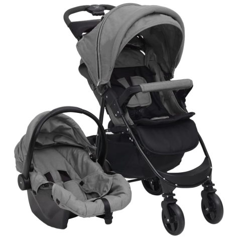 1 kép vidaXL világosszürke acél 3 az 1-ben babakocsi