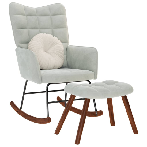 Teljes vidaXL világosszürke bársony hintaszék lábtartóval termékleírás