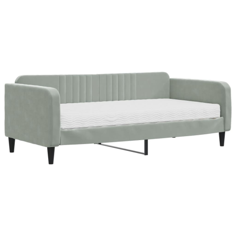 vidaXL világosszürke bársony kanapéágy matraccal 90 x 190 cm (3197052) ágy és ágykellék 1 kép