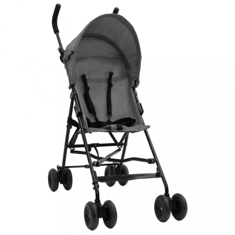 1 kép vidaXL világosszürke-fekete acél babakocsi