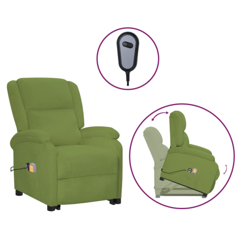 vidaXL Világoszöld bársony felállást segítő dönthető masszázsfotel