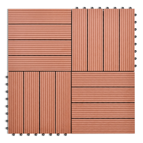 Ez a 11 darabos, fa-műanyag összetételű csempekészlet, az egyenként 30x30 cm-es méretű csempékkel, összesen 1 teljes négyzetméternyi felületet biztosít. Tökéletes teraszok, erkélyek, fürdőszobák, és minden olyan hely számára, ami közel van a kádhoz, fürdőhöz. Ez a kiváló minőségű WPC csempe gyorscsatlakozó funkcióval bír, ami egyszerű, szerszámot nem igénylő felszerelését lehetővé teszi. A fa-műanyag-kompozit vízállóvá, és a több éves használa