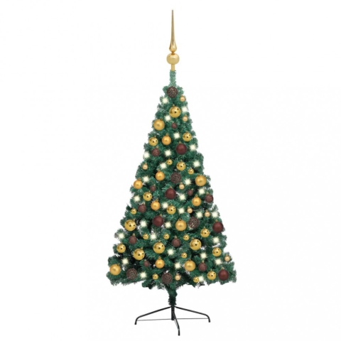 3 kép vidaXL Zöld fél műkarácsonyfa LED fényekkel és gömbszettel 150 cm