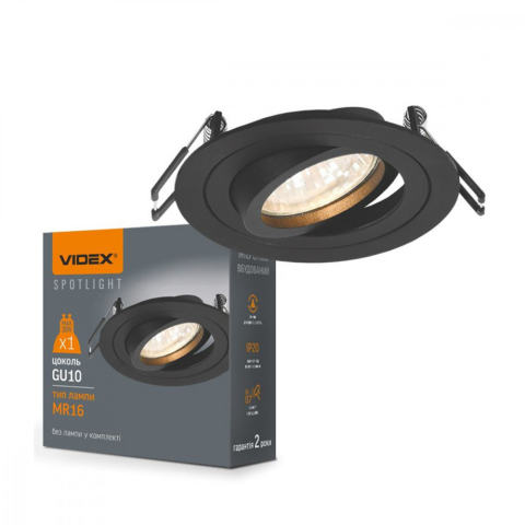 1 kép Videx Süllyesztett mennyezeti lámpatest halogén GU10 VIDEX fekete kerek mozgatható