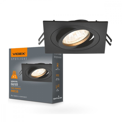 1 kép Videx Süllyesztett mennyezeti lámpatest halogén GU10 VIDEX fekete négyzet mozgatható