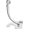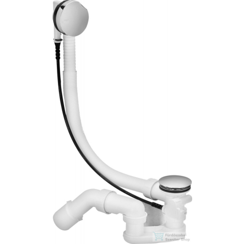 lapos kivitel; csak 33 mm helyigény a fürdőkád mögött flexibilis túlfolyócső, krómozott forgatható rozetta, krómozott szelepkúp, szifon, 45°-os lefolyóív, nemesacél szelep