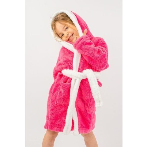 Vienetta Secret Nyuszi soft lánykafürdőköpeny, sötét rózsaszín, fülekkel 98/104