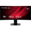 Monitor - VA, ívelt, Ultra Wide QHD, 3440 × 1440 (21:9), 120 Hz, tükröződésmentes kijelző, 8 bit, 3,5 ms, FreeSync Premium, állítható magasság, Power Delivery max. 65 W, HDR, KVM, hangszórók, HDMI, USB-C és DisplayPort, USB, USB-C, RJ-45 (LAN) és USB-B interfész, VESA Ez a nagyszerű ViewSonic LCD számítógép monitor 34" képátlóval és Ultra Wide QHD (3440 × 1440) felbontással büszkélkedik. A VA panel magas kontrasztja mélyebb fekete szín megjelenítését teszi lehet