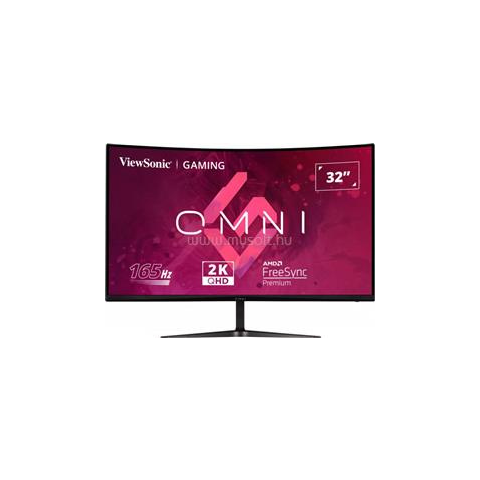 Monitor - VA, ívelt, Quad HD, 2560 × 1440 (16:9), 165 Hz, tükröződésmentes kijelző, 8 bit, 1 ms, FreeSync, hangszórók, HDMI és DisplayPort, VESA Élvezd kedvenc játékaidat minőségi Quad HD (2560 × 1440) felbontásban a kiváló 32" ViewSonic LCD ívelt monitorral! A sima kép biztosításához VA panelt kínál 165 Hz képfrissítési sebességgel és 1 ms vá