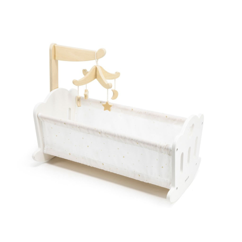 Játék babaágy - fa, hinta, baba max. magassága 38 cm, mérete 23 × 41,9 × 33,3 cm (Ma×Sz×H), ajánlott 3 éves kortól A Viga babaágy kulcsfontosságú tulajdonságaiFa ringatható babaágyAz ágy 38 cm-es méretig befogad babákatA csomag tartalmaz egy pamut párnát és egy forgót az ágy fölé3 éves kortól ajánlottAz ágy mérete