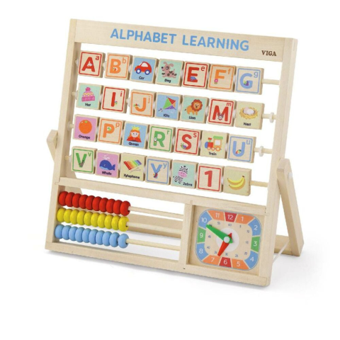 Egy számlálóra hasonlító tábla ábécéblokkokkal. Az ábécéskockák hátoldalán egy-egy angol betűnek megfelelő kép található. A játék alsó tábláján egy kis abakusz található, amelyen a gyermek megtanul számolni, összeadni és kivonni 30-ig. Az abakusz bükkfá