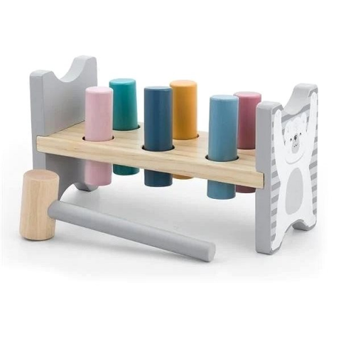 Kalapálós játék gyerekeknek - fa, kisasztal alapforma, állatkák motívum, kalapács és tömbök a csomag része, mérete 10,5 × 20 × 7 cm (Ma×Sz×Mé), ajánlott 2 éves kortól A fából készült kalapács játék segítségével a kicsik nagyon jól szórakoznak. A csomagban találsz egy tartóelemet aranyos jegesmedve díszítéssel, 6 színes szöget és egy kalapácsot. Helyezd a sz