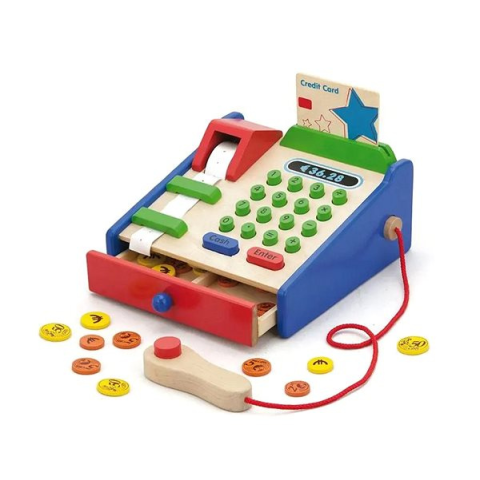 Játék pénztárgép - alkalmas 3 éves kortól, fiók, pénz, bankkártyák és nyugták a csomag része, fa, méretek 90 × 180 × 180 mm (M×Sz×Mé) Ha a gyerekeid kedvence a boltos játék, a kiváló Viga gyerek pénztárgépnek minden bizonnyal jó hasznát fogják venni. A beépített leolvasó segítségével a gyerekek gyorsan és ügyesen beolvashatják a ter