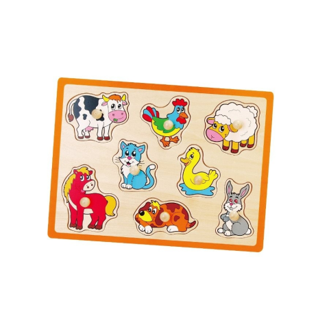 Gyermek fa puzzle Viga Farm. Élvezzen vele sok örömet és szórakozást. A csomagolás 8 darabot tartalmaz. 18 - hónapos kortól ajánlott. A játék festett fa. Kiemelt fontosságúnak tartjuk a biztonságot és minőségét a termékeinket, így a használt festék a játé