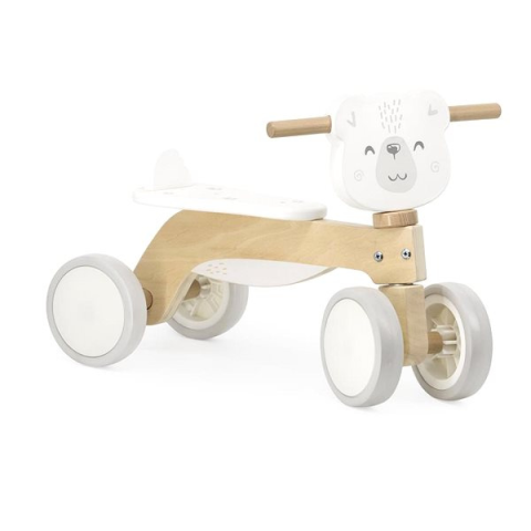Futóbicikli - többnyomvonalú, váz anyaga fa, fehér kivitel A többnyomvonalú Viga lábbal hajtós járgány klassz választás a legkisebbek számára is. Ezenfelül megkönnyíti a gyerekeknek az egyik helyről a másikra való eljutást. Konstrukcióját fából hozták létre,