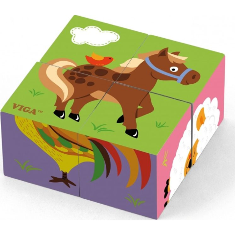Viga Mesekocka 4 db-os Kirakójáték - Farmállatok (6934510508357) puzzle, kirakós 1 kép