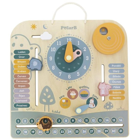 Tanuló óra - mutatós, oktatási terület idő, évszakok, hónapok, időjárás és hét napjai, ajánlott 3 éves kortól, fa, mérete 30 × 30 cm (Ma×Sz) Cseh nyelvű, fából készült naptár, amely órákat, napokat, hónapokat, időjárást és évszakokat tanít. Méretek: kb. 29,5 × 29,5 × 3 cmAz ajánlott életkor: 3+
