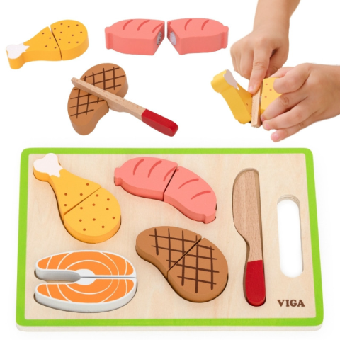 Engedd, hogy gyermeked belekóstoljon a főzés élményébe – teljesen biztonságos, mégis valósághű módon! A Viga szeletelhető játékételek tálcán – húsfélék készlet minden olyan kisgyermek számára kiváló választás, aki szeret szerepjátékokat játszani, utánozni