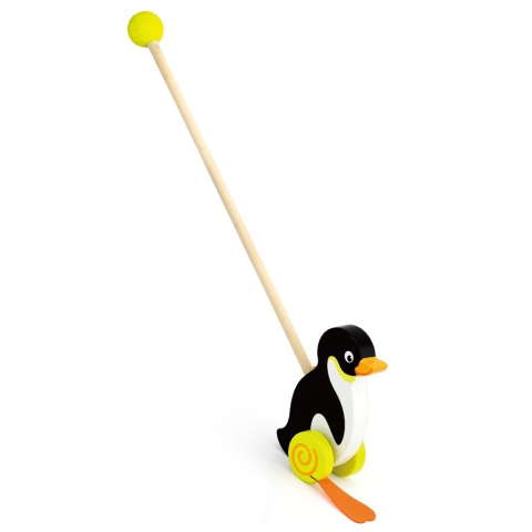 Szép tologatós fajáték Viga pingvin gyermekek számára. Tökéletes oktatási játék. Ideális sétáláshoz és othoni játszáshoz. Élvezzen vele sok örömet és szórakozást. A kerekeken található gumi, vicces módon utánozzák az állatokat. A játék segíti a gyermekekn