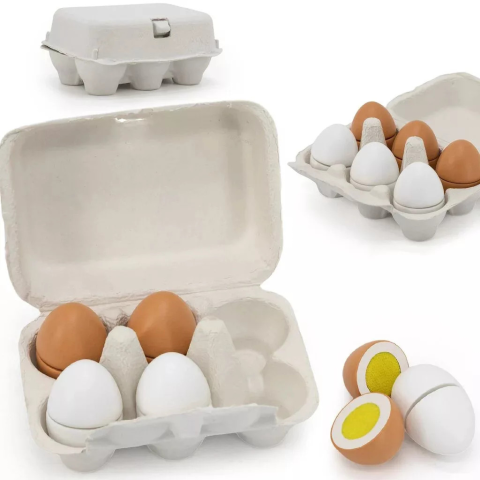 Fedezze fel modern és izgalmas játékainkat, vásárolja meg termékünket kényelmesen webáruházunkból! Termék méret 15 X 10,5 X 7 cm Tojások fából (6 db). Kiválóan alkalmas szerepjátékokhoz, mely segítségével fejlődik a képzelőerő, a nyelvi- és kapcsolatterem