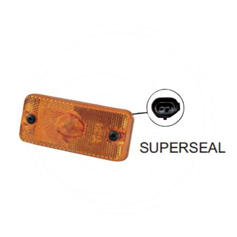 Izzó: 24V5WGLSS, W5W Szín: Lencse: sárga Csatlakozó: Superseal Szélesség (mm): 110 Alak: téglalap alakú Magasság (mm): 55 Furatközép-távolság (mm): 84 Méretek szé x ma x mé (mm): 110 x 50 x 18 Mélység (mm): 18 Rögzítés: függőleges / vízszintes Névleges fe