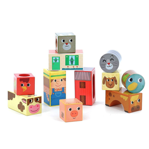 1 kép VILAC fa kirakó hang kockák farm 11 db