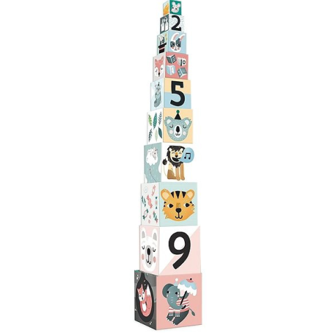 Mesekocka - 10 db a csomagban, anyaga fa, számok és állatok tematikájú, 1,5 éves kortól alkalmas A Vilac, számokkal és állatokkal díszített egymásba tehető és egymásra építhető kockák Michelle Carlsund műhelyéből származó gyönyörű képekkel a gyermekek és a felnőttek számára remek szórakozást bi