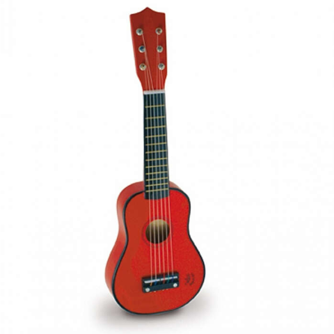 Tedd fel kérdésed a(z) VILAC Piros lakkozott fa gitár 6 műanyag húrral termékről!