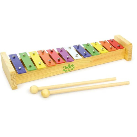 Gyerek xilofon - anyaga fém, dobverők a csomag része, ajánlott 3 éves kortól Támogasd kislányod vagy kisfiad zenei érdeklődését a hosszú hagyományokkal rendelkező Vilac márka xilofonjával. A xilofonnak köszönhetően nemcsak dallamokat szerezni tanul meg, hanem a tizenkét színes