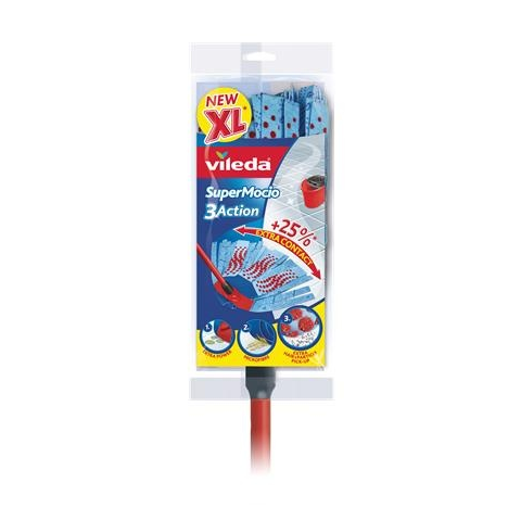 Az egyedülálló felmosó fejjel könnyen ki lehet takarítani a rejtett zugokat is. A Vileda SuperMocio 3Action gyorsfelmosó könnyedén eléri a poros zugokat és sarkokat is.