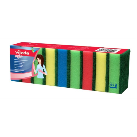 Mosogatószivacs, 9 db, VILEDA "Rainbow" - KHT213 - Törlőkendők és szivacsok - Színes mosogatószivacsok, melyek jól magukba szívják a mosogítószereket, így könnyen felhabzik és jól tisztítja az edényeket, tányérokat, evőeszközöket. Gazdaságos kiszerelésben