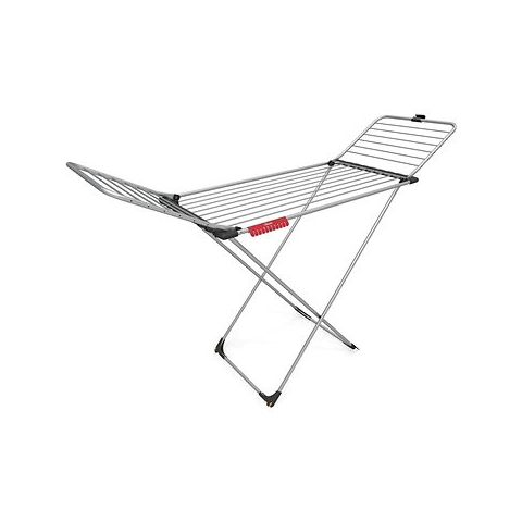 Ruhaszárító - beltéri, álló, összecsukható, szabadon álló, 1 emeletes, tartó a kisebb ruhadaraboknak a csomag része, anyaga fém, mérete kinyitva 92 × 167 × 56 cm (Ma×Sz×Mé), mérete összehajtva 132 × 56 × 4 cm (Ma×Sz×Mé), tömege 2,2 kg A Vileda Aluminium 100 szárító egy rendkívül könnyű ruhaszárító, amelyet gyakori mozgatásra terveztek. Használható beltéren és kültéren egyaránt. Az alumínium szerkezetének köszönhetően ellenáll a kor