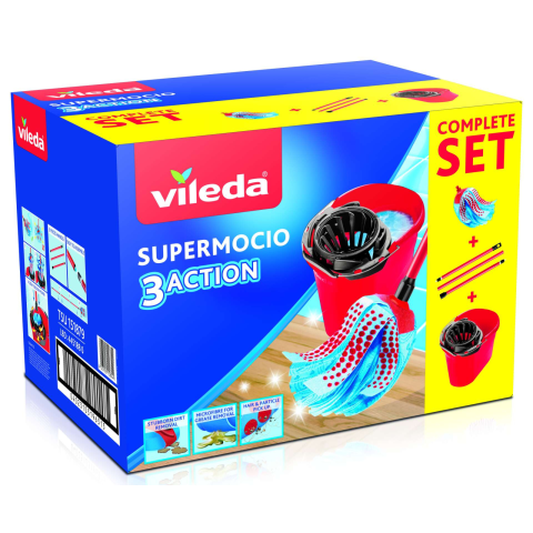 Vileda SuperMocio 3Action XL Felmosó szett: Könnyű takarítás, ragyogó eredmények ✨ Ez a Vileda SuperMocio 3Action XL felmosó szett forradalmasítja a takarítást! A 25%-kal nagyobb felületi érintkezéssel (cégen belüli laboratóriumi tesztek alapján) g...