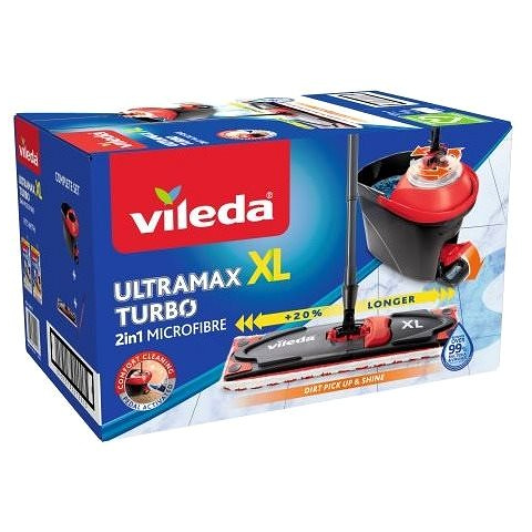 Felmosó - lapos, teleszkópos nyél, törlőfelület anyaga mikroszálas, 43 cm-es törlésszélesség, rúd hossza 125 cm, rúd anyaga műanyag Vileda Ultramax XL Turbo felmosóA Vileda Ultramax XL Turbo felmosó ideális segítőtárs lesz minden háztartásban. Az állítható nyéllel, a mosófejjel és a pedálos mechanizmusú vödörrel minden padlót képe