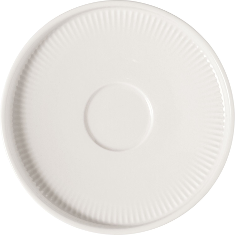 VILLEROY & BOCH Afina espresso-alátét, 130 mm átmérőjű, fehér porcelánból készül. A Villeroy & Boch márkájú Afina elegáns, minimalista edényei gyönyörűen mutatnak az asztalon. A fényes prémium porcelánt finom, a napsugarak ihlette domborminta díszíti. A modern és lágy vonalak egyedi jelleget kölcsönöznek ennek a sorozatnak.