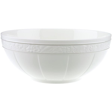 Salátástál - űrtartalma 2,74 l, átmérője 24,2 cm, anyaga porcelán, 1 darab a csomagban, mosogatógépben mosható és mikrohullámú sütőbe tehető, mosogatógépben tisztítható, Salátová mísa velká z kolekce Gray Pearl s reliéfním vzorem, květinovým dekorem a šedými linkami, objem 2740 ml.
