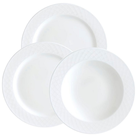 18 részes Villeroy & Boch Bella tányérkészlet. A készlet a következőket tartalmazza: 6 x sekély tányér, 6 x mélytányér és 6 x desszertes tányér. A Bella sorozat otthon érzi magát egy ambiciózus konyhában és a hagyományos vendéglátásban egyaránt. Univerzális klasszikus, ami bárhol megadja az alaphangot. A készlet tartalmazza: 6 x 221140612, 6 x 221140616 és 6 x 221140614.