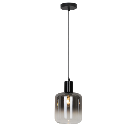 Függesztett lámpa átmenetes füstszínű üveg búrával és fekete szerelvényekkel. E27 foglalattal rendelkezik, az izzó azonban nem része a csomagolásnak. Stílusos és modern választás különböző belső terekhez...