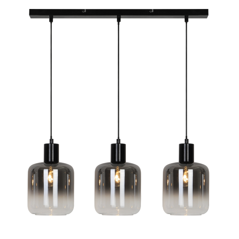 Függesztett lámpa átmenetes füstszínű üveg búrával és fekete szerelvényekkel. E27 foglalattal rendelkezik, az izzó azonban nem része a csomagolásnak. Stílusos és modern választás különböző belső terekhez...