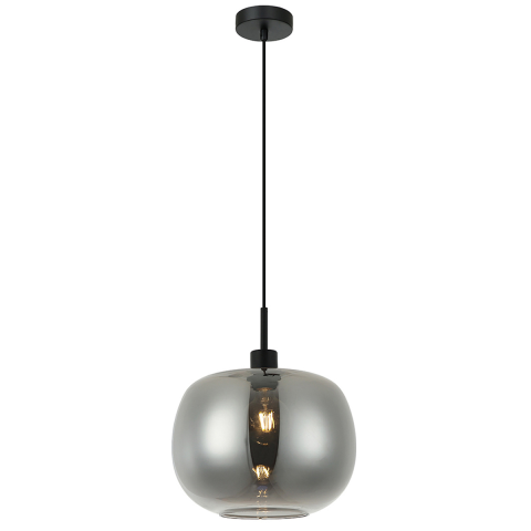 Függesztett lámpa füstszínű vagy pezsgőszínű üveg búrával és fekete fém szerelvényekkel, E27 foglalattal, amelyet a csomagolás nem tartalmaz. Modern és elegáns kialakításával bármely helyiség tökéletes kiegészítője lehet...