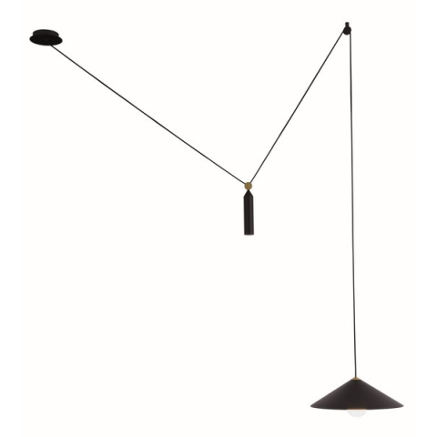 Függesztett lámpa opál üveg búrával és fekete fém szerelvényekkel. Letisztult és modern megjelenése elegáns megvilágítást biztosít bármely enteriőrben, állítható belógásának köszönhetően pedig rugalmasan igazítható a különböző igényekhez...