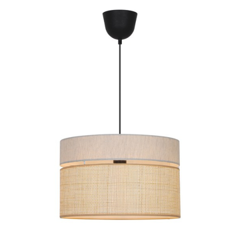 Függesztett lámpa természetes színű búrával és fekete fém szerelvényekkel. Elegáns és letisztult megjelenése harmonikus kiegészítője lehet bármely helyiségnek...