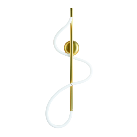 LED fali lámpa matt arany fém kivitelben, szilikon elemekkel. Különleges hajlított fénycsővel, amely modern és egyedi megvilágítást biztosít a belső térnek...